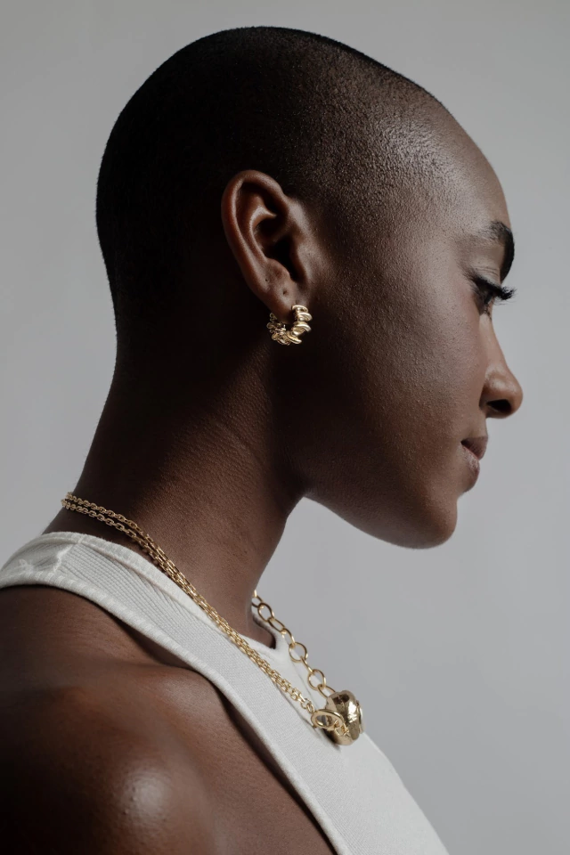 Brinco de argola, feito em formato orgânico, com formatos ondulados.