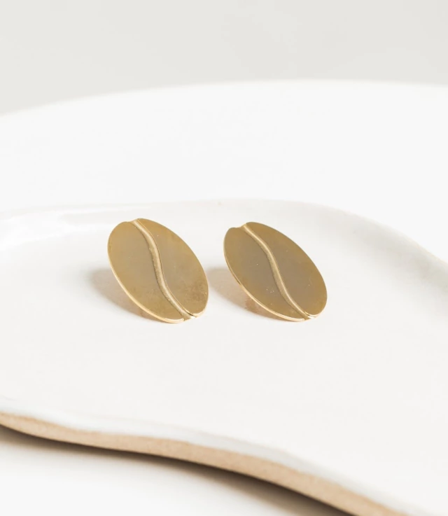 Descubra o Brinco Cula, uma peça exclusiva feita em metal chapado que se destaca pelo seu formato único de grão.