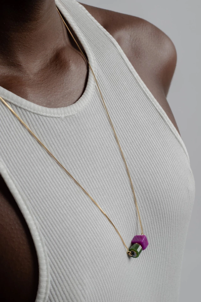 Colar feito em corrente veneziana, com pedras naturais que trazem cor e mais vida ao colar.